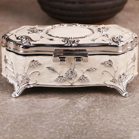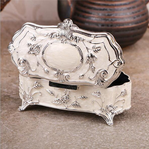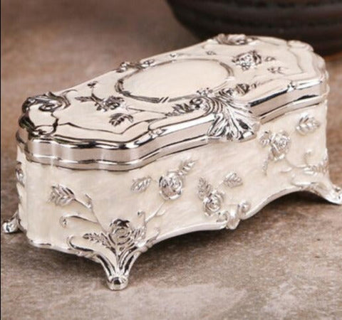 Enamel Jewellery Box: crafted from high-quality metal in a regal enamel design. Colour: White, with a black velvet interior. Elegant protection for your treasures.