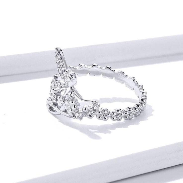This polished silver ring is composed of an army of tiny flowers and a beautiful fairy that will accompany you every day to fill you with wonders, even in the hardest times!