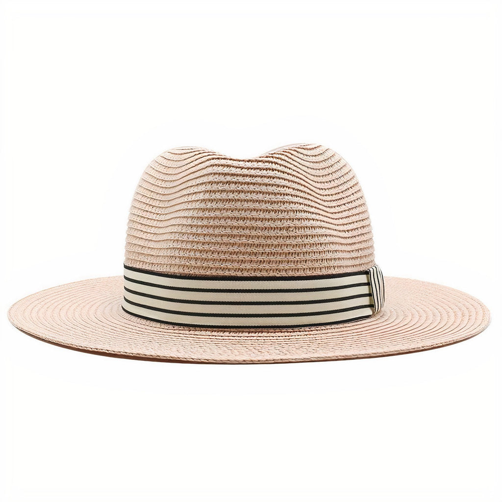 This fashionable Panama hat is the perfect accessory for all those beautiful summer days. Made with stylish weaving, this hat keeps you cool and protected from the sun. Its colour between light pink and salmon, along with the beautiful striped ribbon, give this piece a very distinct style. Whether you're spending a relaxing day at the beach or a tranquil walk, this hat helps you stay at the forefront of trends.