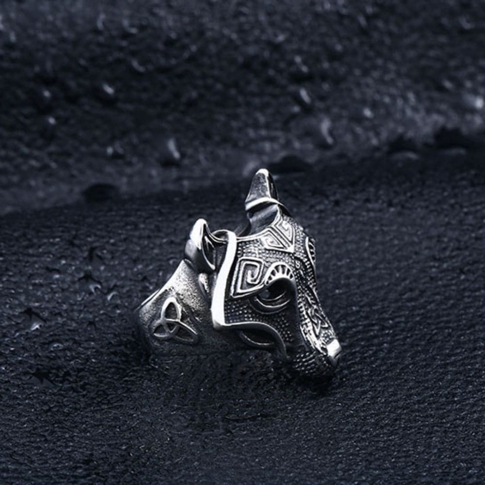 Embody the ferocity of the wolf with this Fenrir steel ring!
