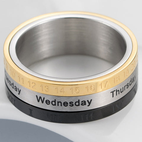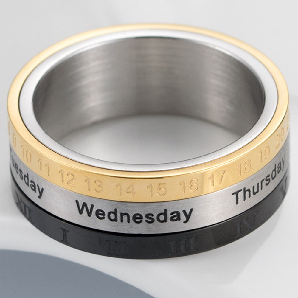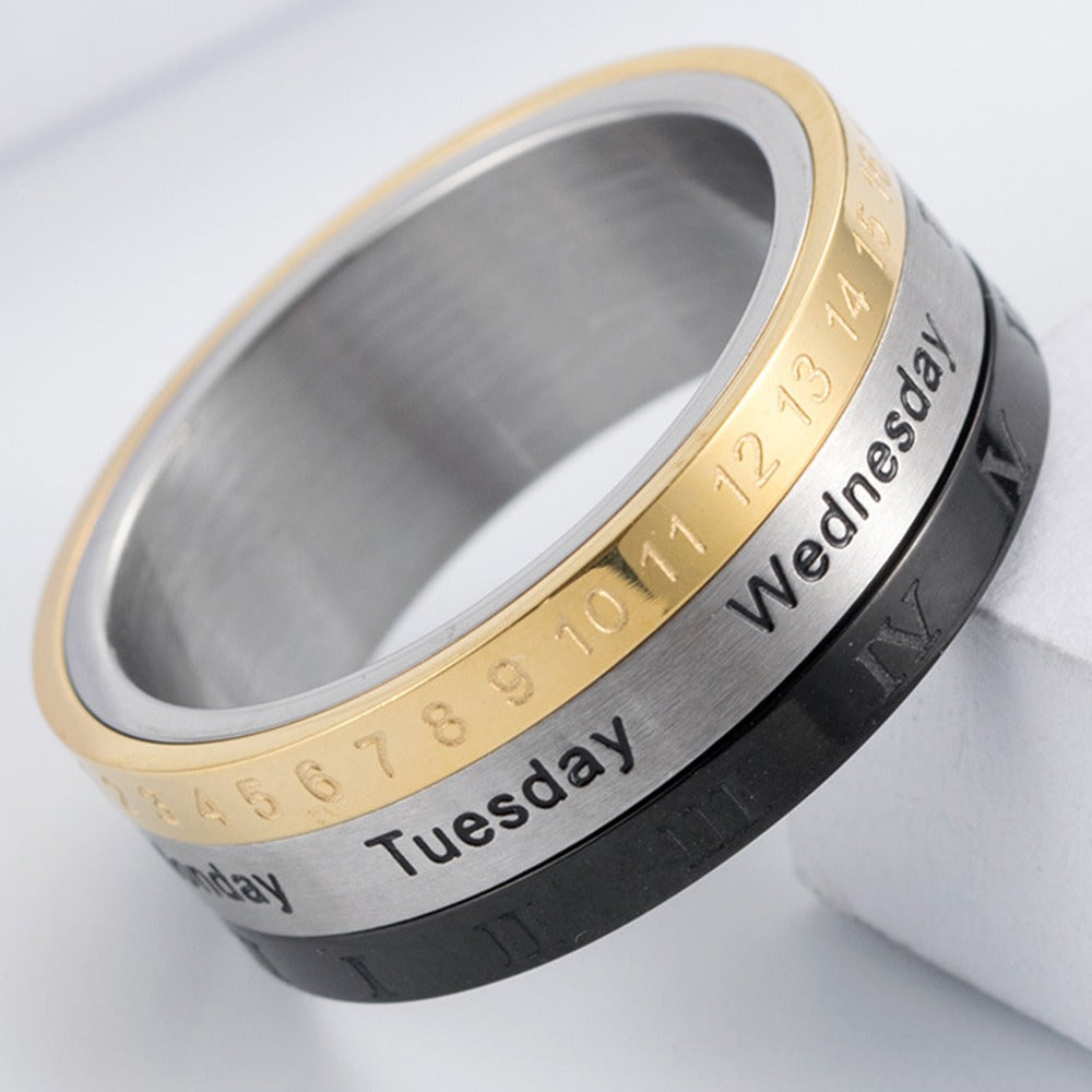 Don't wait any longer to fall in love with this stunning calendar fidget ring and effectively reduce stress thanks to its spinning feature, all while maintaining a style that combines elegance and modernity.