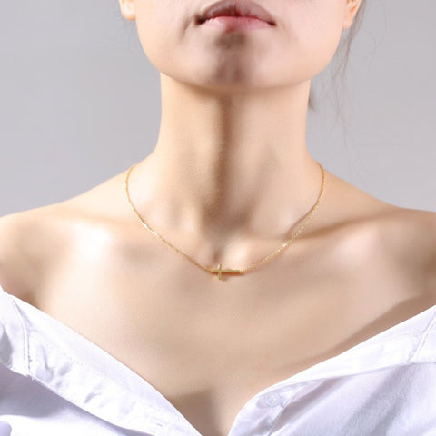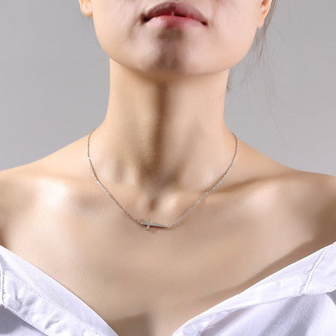 Wear this magnificent stainless steel horizontal cross necklace in style.
