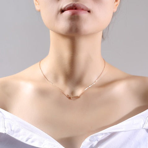 This necklace, featuring a beautiful horizontal cross, is made from stainless steel. With its absolutely elegant style, it wonderfully enhances your look and your neckline.
