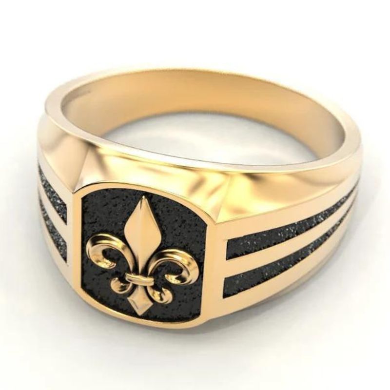 Sophisticated, majestic, and admirable, the fleur-de-lis is one of the heraldic symbols often present on royal coats of arms. This symbol is a signet ring that appeals to all believing Christians, being one of the four most popular images, alongside the cross, the eagle, and the lion.