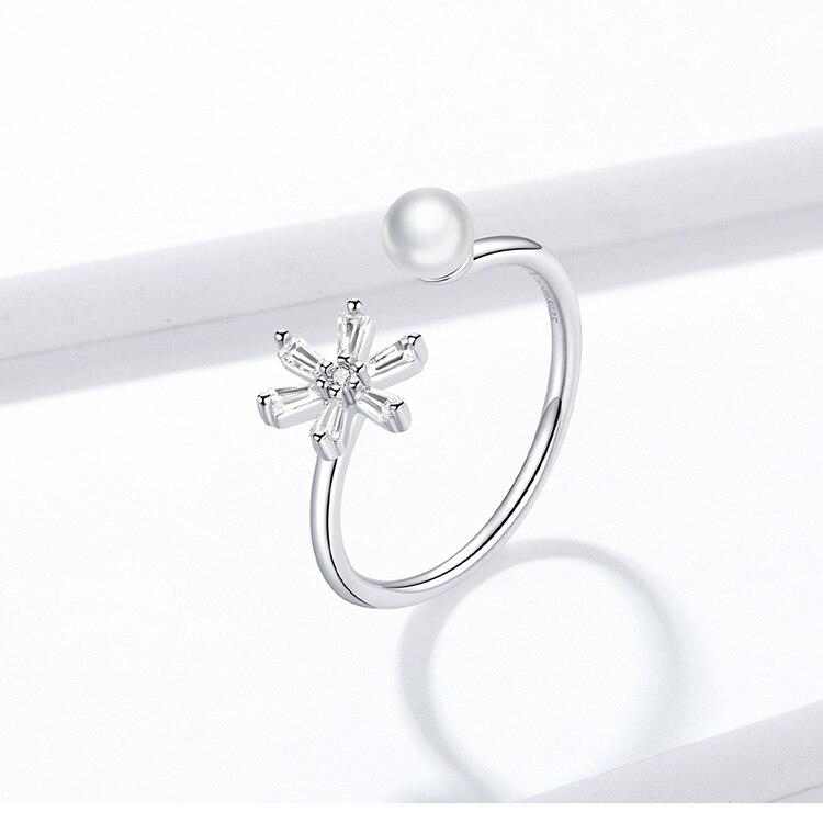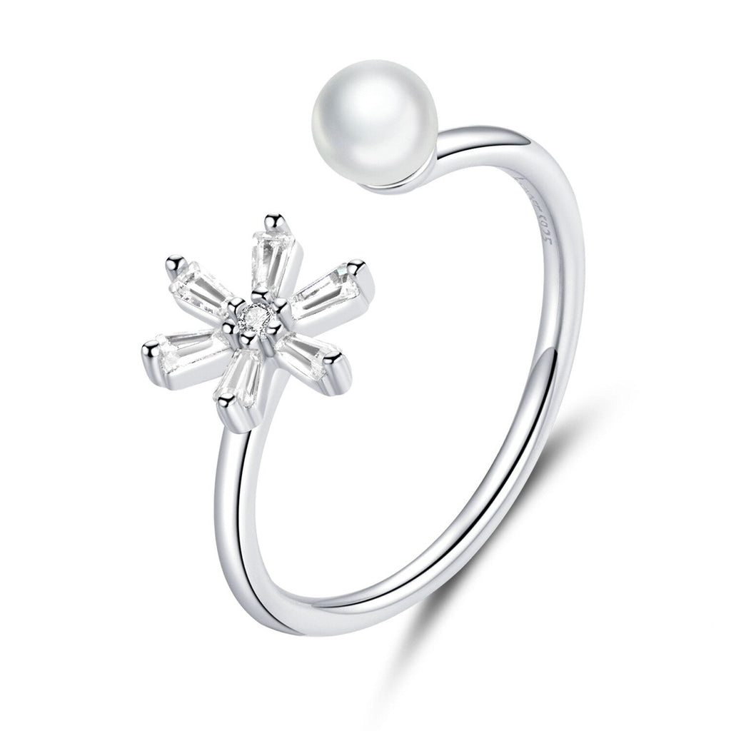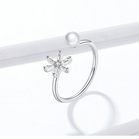 Its beautiful silver frame is polished and adorned with a magnificent pearl and a flower of white crystals. Thanks to its adjustable size, it's easy to put on and extremely comfortable against the skin. If you like simple, elegant, and easy-to-wear jewellery, this ring is for you!