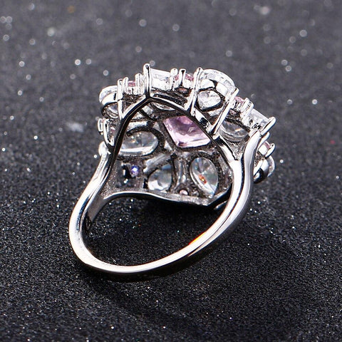 The detailed setting and high-quality finish give this ring an elegant and luxurious look. Moreover, the ring is adorned with beautiful coloured crystals that give it a shimmering glow and captivating charm.