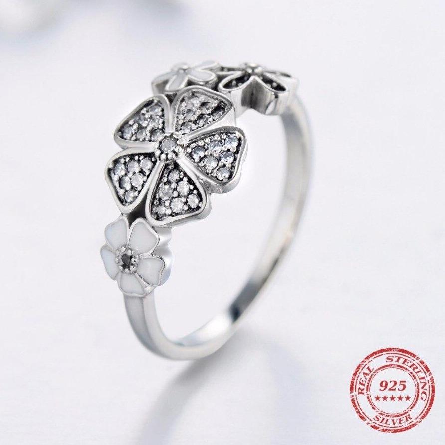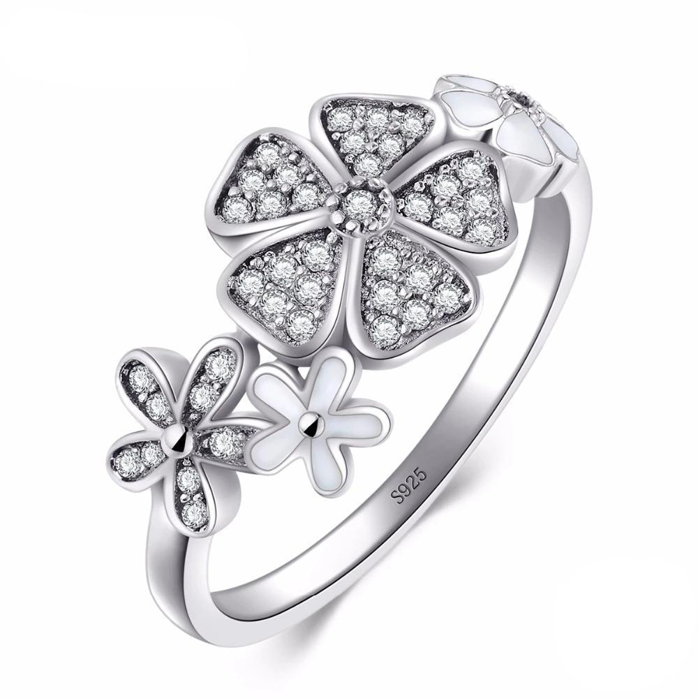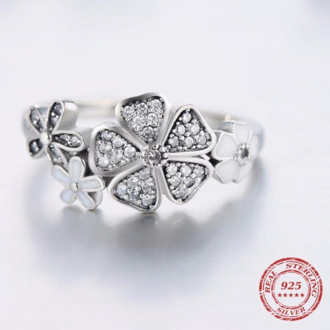 This high-quality ring features a charming and elegant setting in polished solid silver, with delicate small flowers. It's a lightweight and easy-to-wear piece of jewellery, perfect for matching with various styles.