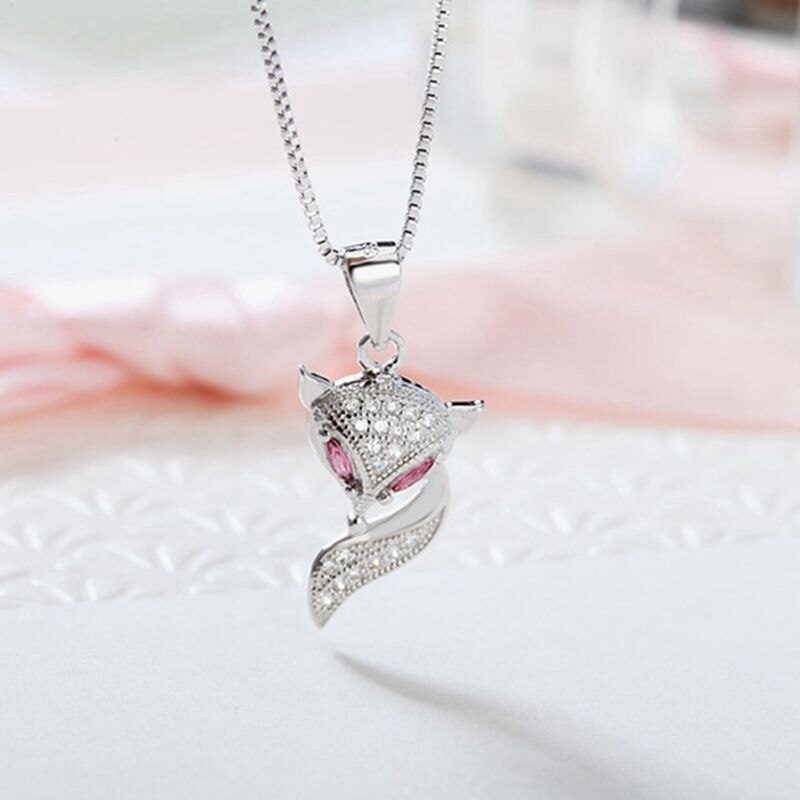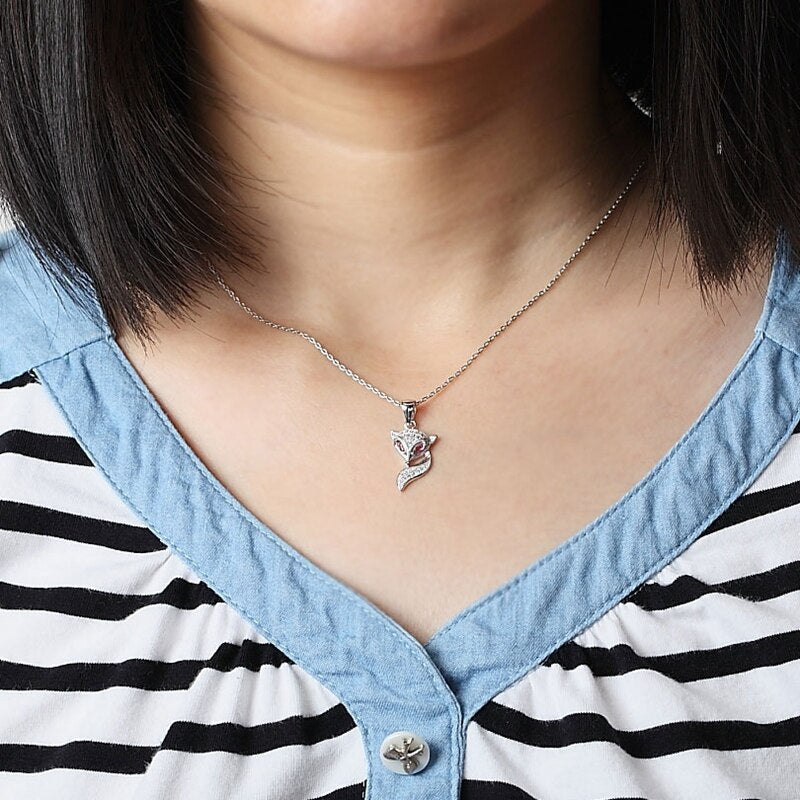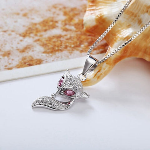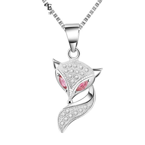 Charming silver necklace with a pink-eyed fox. Made of 925 sterling silver.