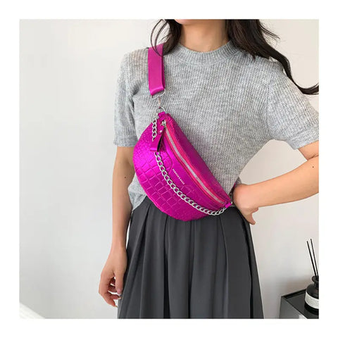You will love the modern style of this fuchsia waist bag.