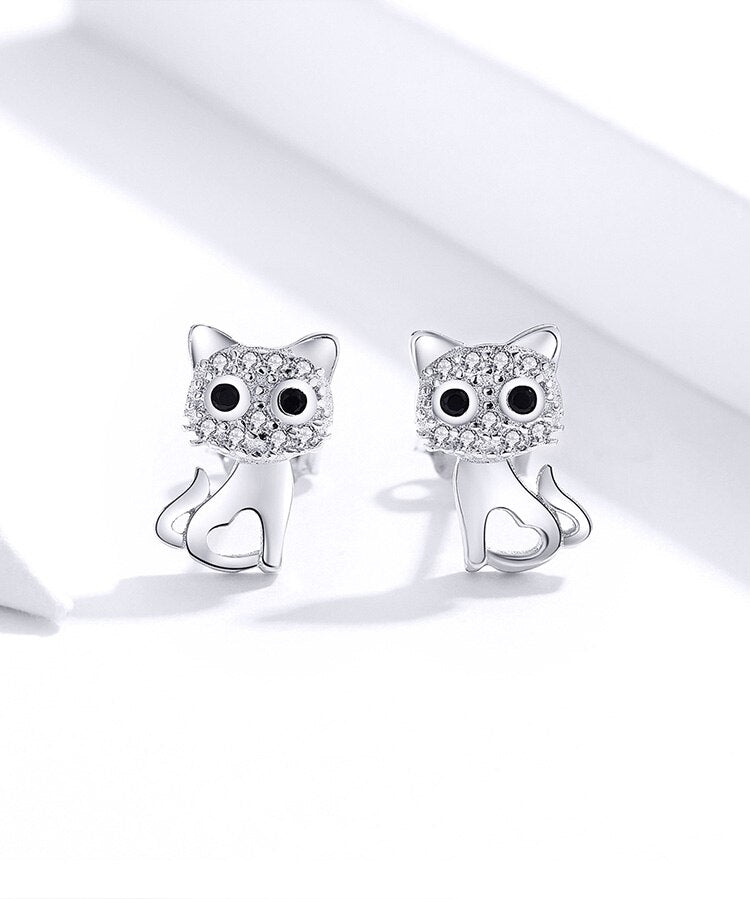 Introducing the Funny Cat Earrings - the perfect accessory for a boy! These amusing earrings feature an adorable kitten with a sparkling head. They're sure to put a smile on his face and make an ideal gift for any occasion.
