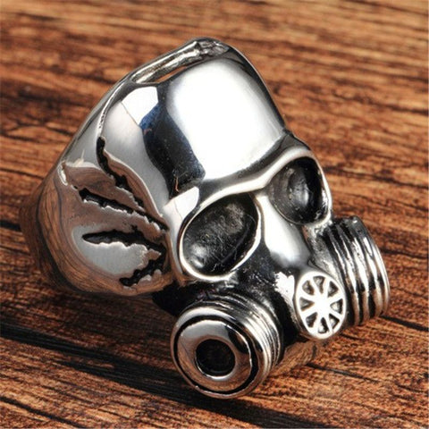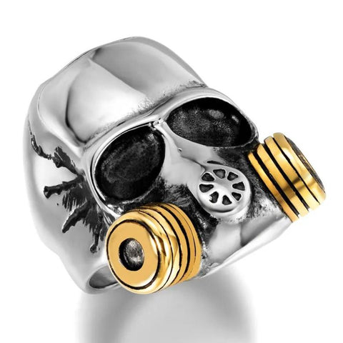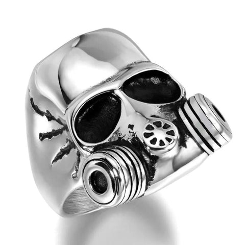 This skull-shaped signet ring with a gas mask is a true portable work of art that attracts all eyes. The unique design, which blends industrial with macabre, makes this ring an indispensable fashion accessory for those who dare to stand out from the crowd!