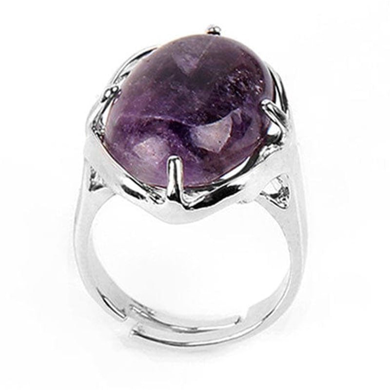 This beautiful ring with natural amethyst brings you wisdom and strength. Amethyst helps to purify the mind and reduce stress and anxiety.
