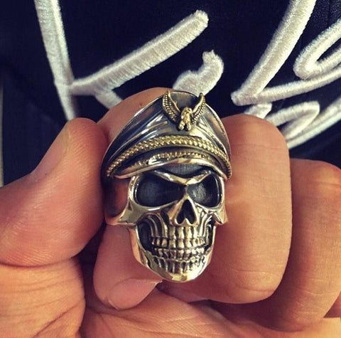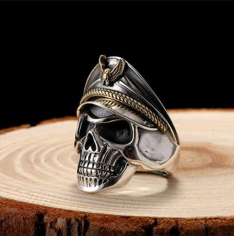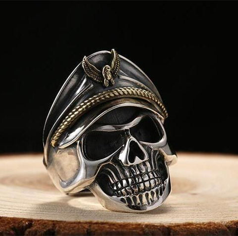 Prepare for battle and assert your leadership with this German skull ring, featuring the famous "Order of the Eagle".