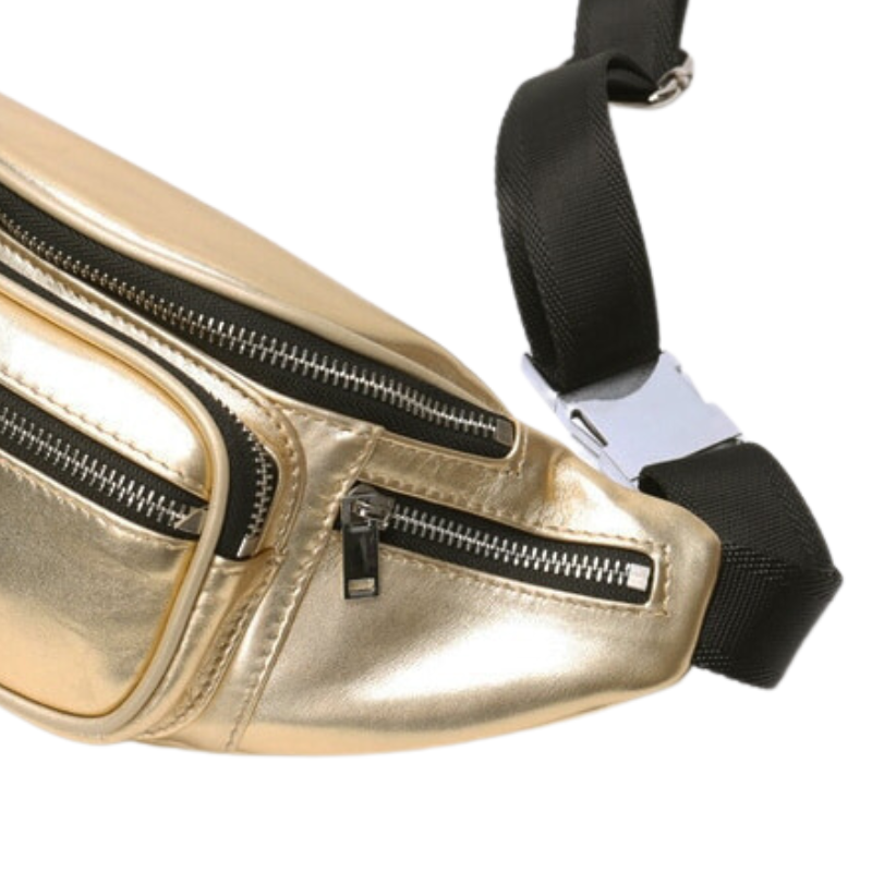 This gold bum bag is the indispensable accessory that combines a shimmering style with functionality, making it fun and stunning! Whether it's for a sparkling night out or a sunny day outdoors, this gold bum bag lets you shine wherever you go — with total convenience!