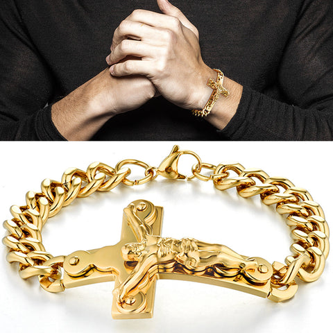 A high-quality religious bracelet at an affordable price. This magnificent gold stainless steel religious bracelet is one of a kind.
