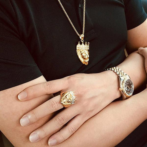 Adorn this lion ring with a luxurious golden crown that represents royalty.