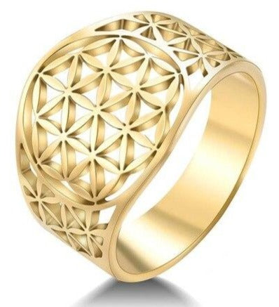We proudly introduce this new golden version. The Flower of Life is a spiritual symbol that stands out prominently in the form of a ring. As you can see, it fits perfectly and enhances the beauty of your hand.