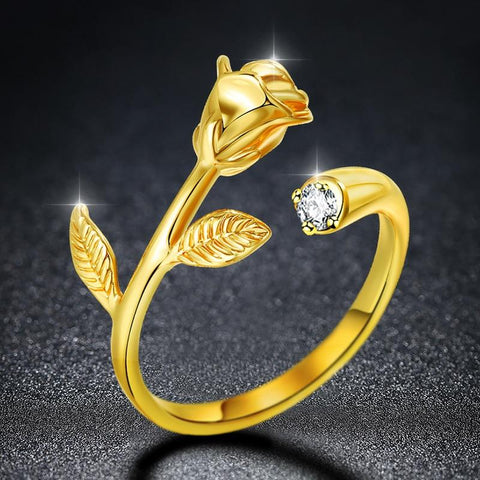This magnificent gold ring with a sparkling stone is a unique jewel, with details finished to perfection. The result is a piece in the shape of an eternal rose.