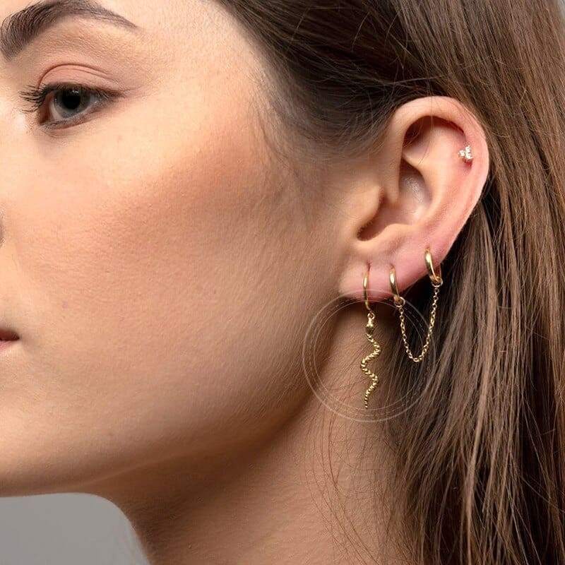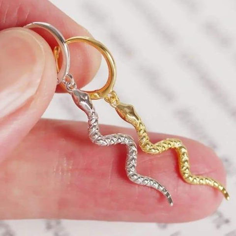 Wear these gold snake earrings on any occasion thanks to their versatile style. This model of drop earrings is made in 925 gold-plated silver. The snake delicately hangs on your ear, giving you elegance. We guarantee that you will fall in love with these snake earrings, symbols of rebirth.