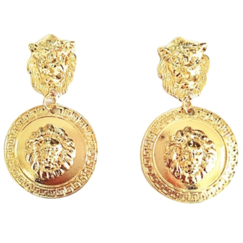 A beautiful pair of gold earrings featuring a lion motif! A pair with an extremely modern style, paying homage to your favourite animal. They feature two different shapes. This pair is perfect for both day and night use. Easy to put on and comfortable to wear. A great gift idea.