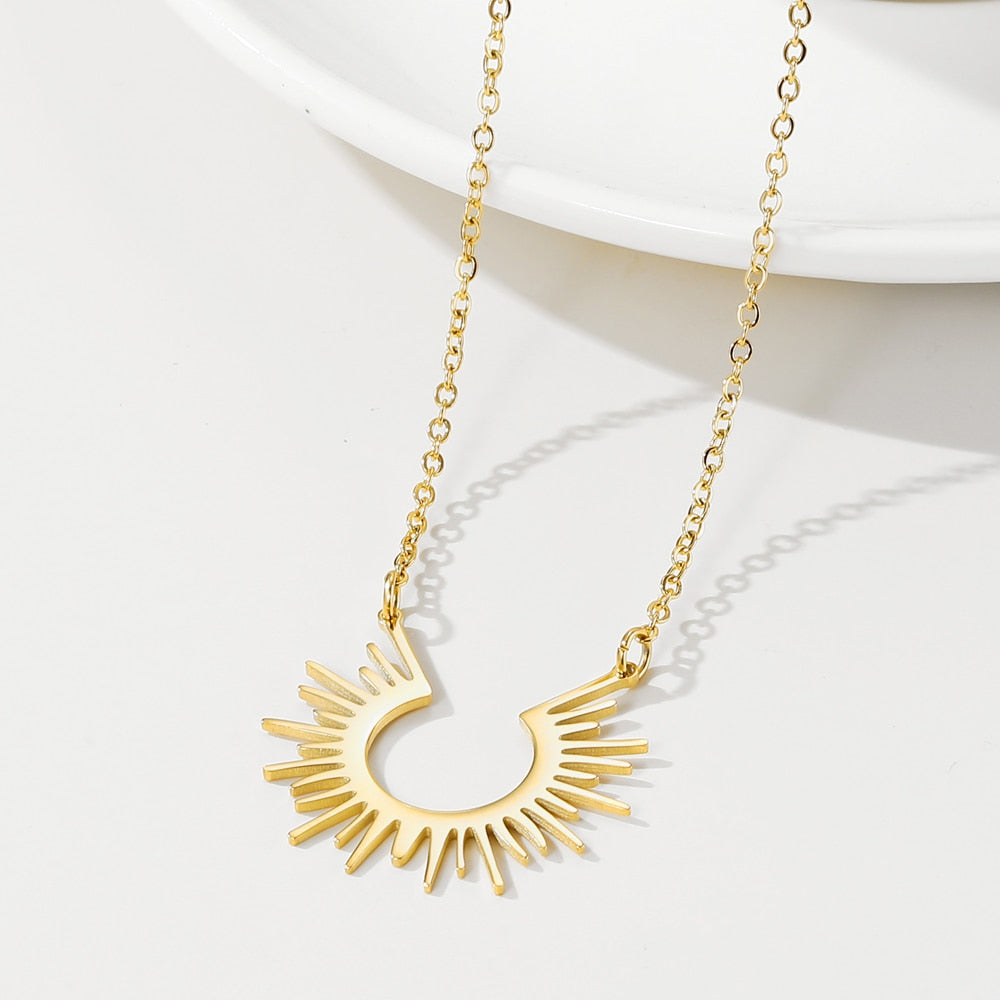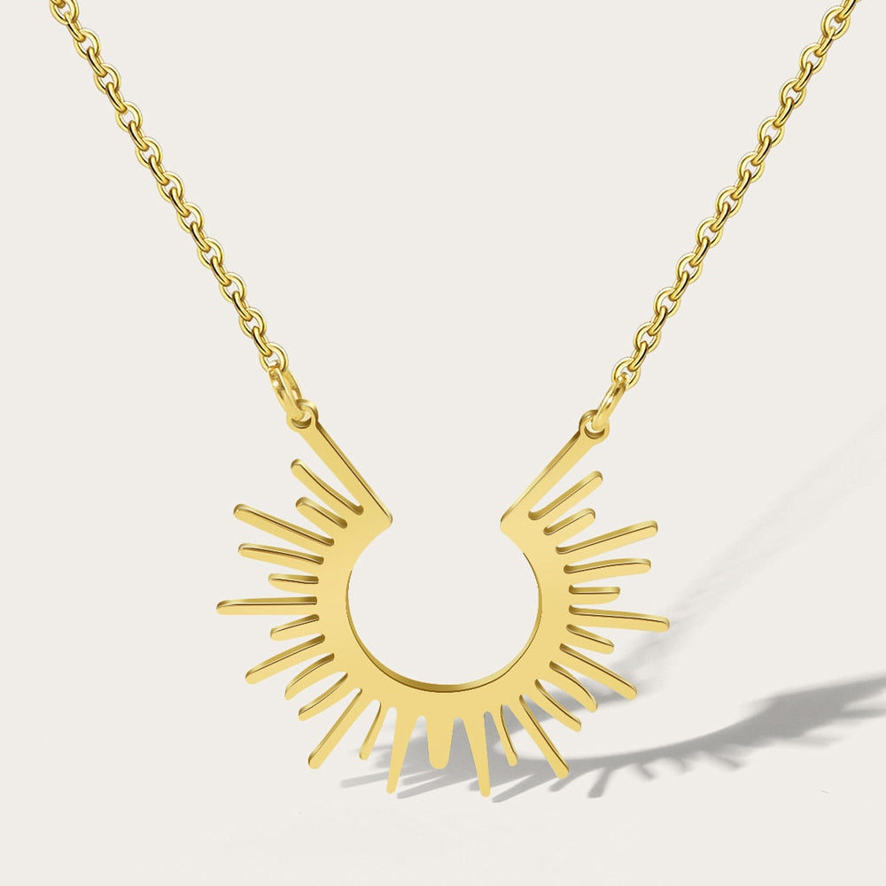 Pamper yourself with a stylish fashion accessory – our 14-karat gold-plated stainless steel sun pendant.