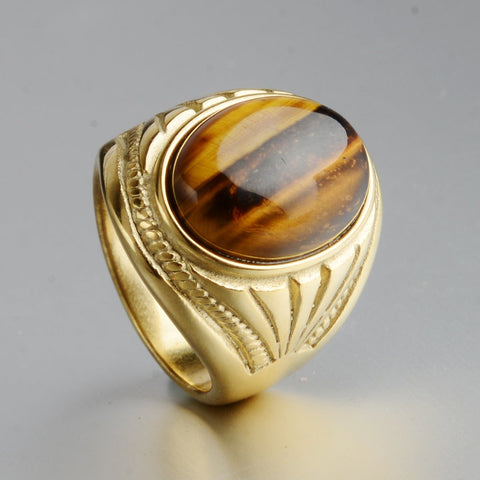 - Materials: golden metal and tiger's eye stone