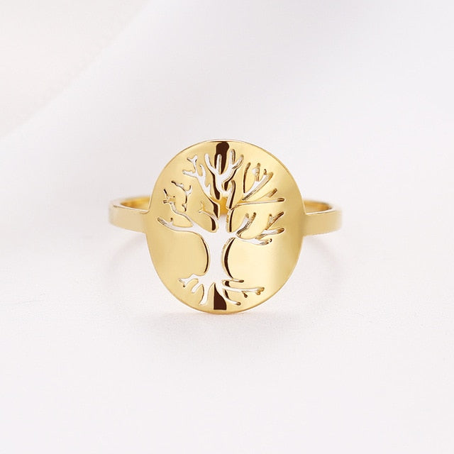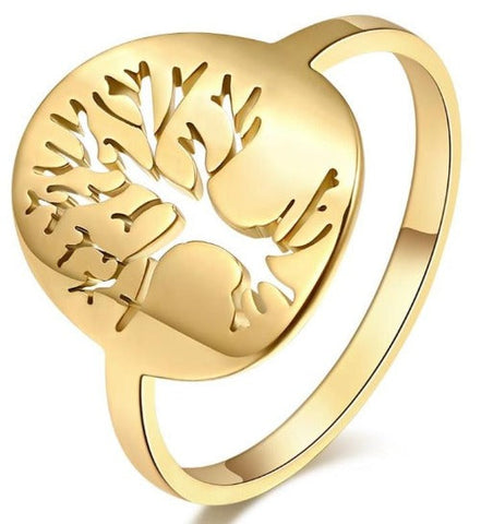 This golden Tree of Life ring is elegant and enhances your hand as it should. It shines beautifully and its stainless steel composition ensures it does not tarnish over time.