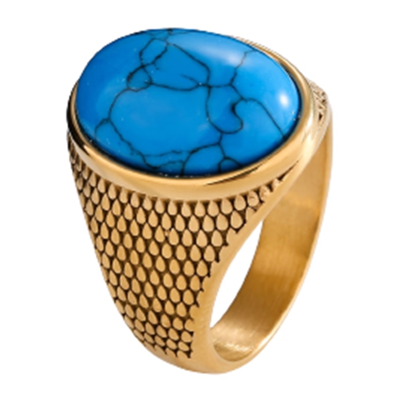 Add an extra touch of royalty and style to your most important looks with this stunning gold ring with turquoise. This timeless jewel is the perfect way to express your individuality and style.