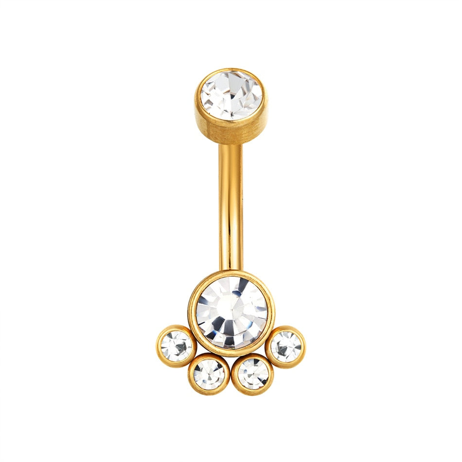 Add a touch of sophistication to your look with this stunning golden belly button piercing. This delicate piece is perfect for any occasion, adding a subtle elegance to your style.