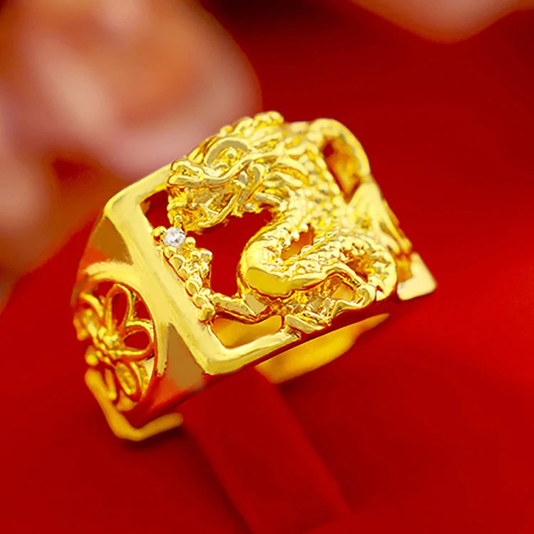Train this golden Japanese dragon with all your passion, tenderness, and love. If you're a good dragon knight, it will repay you a hundredfold! Golden copper ring.