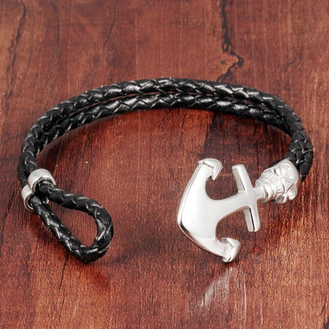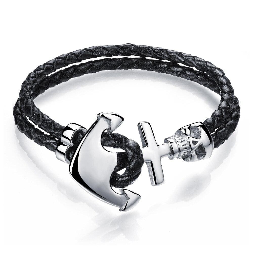If you're a fan of the world of skulls and crossed bones, as well as the maritime universe, you'll love this anchor bracelet! This men's anchor bracelet is incredibly durable thanks to its two main materials. The cord is made of black leather, providing very comfortable wear, while the anchor is made of stainless steel, ensuring long-lasting durability.