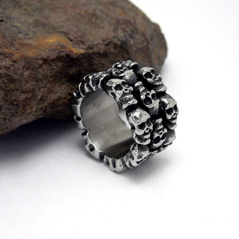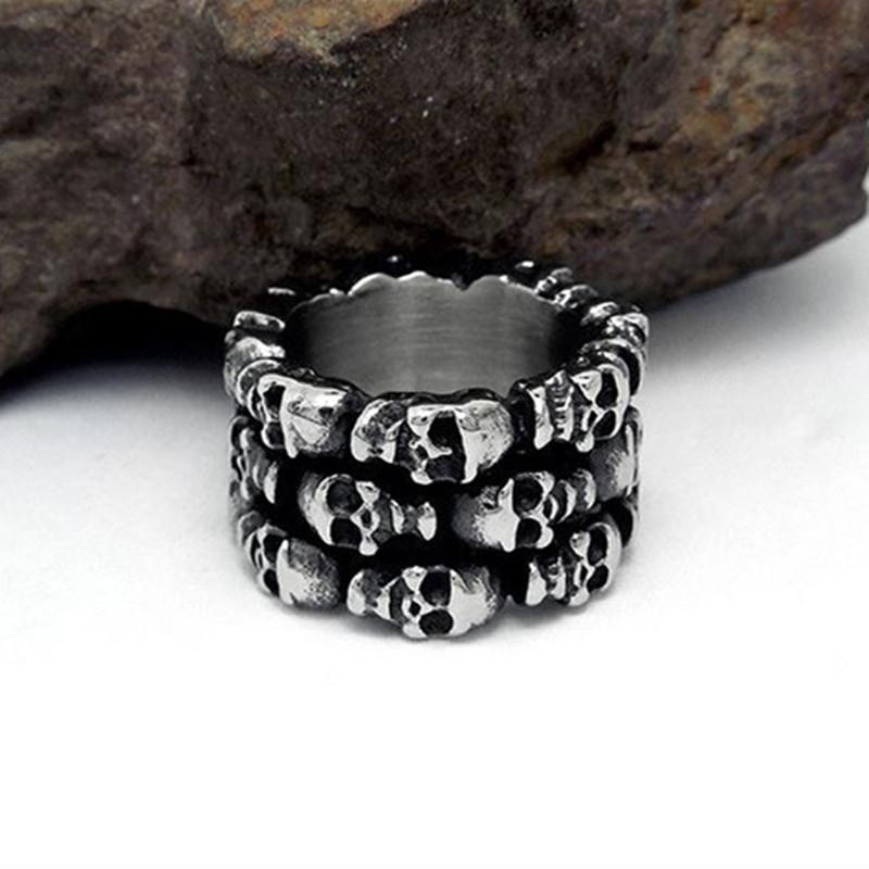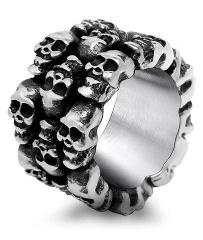 This ring, adorned with multiple skulls, perfectly complements the punk style, as well as biker and gothic styles. We have to admit, it's quite dark!