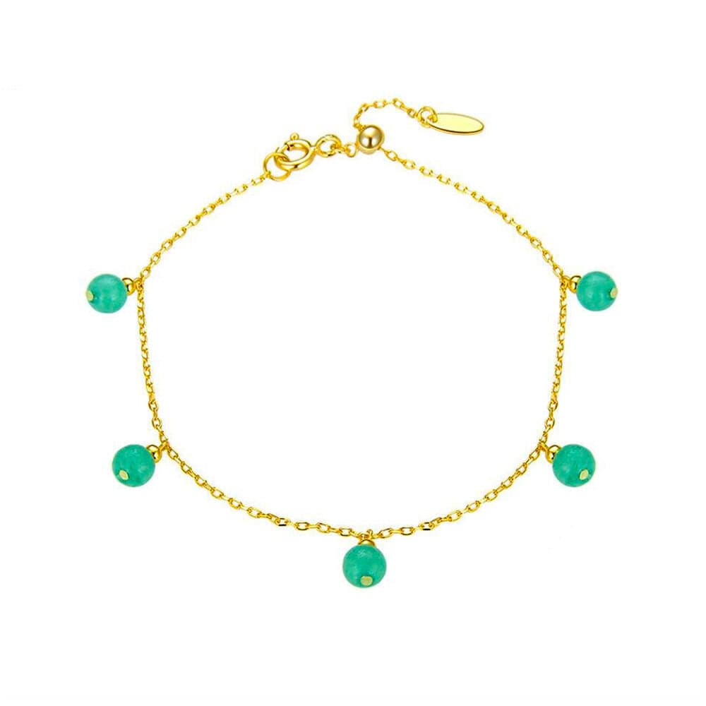 This dazzling gold bracelet with aventurine offers protection and prosperity.