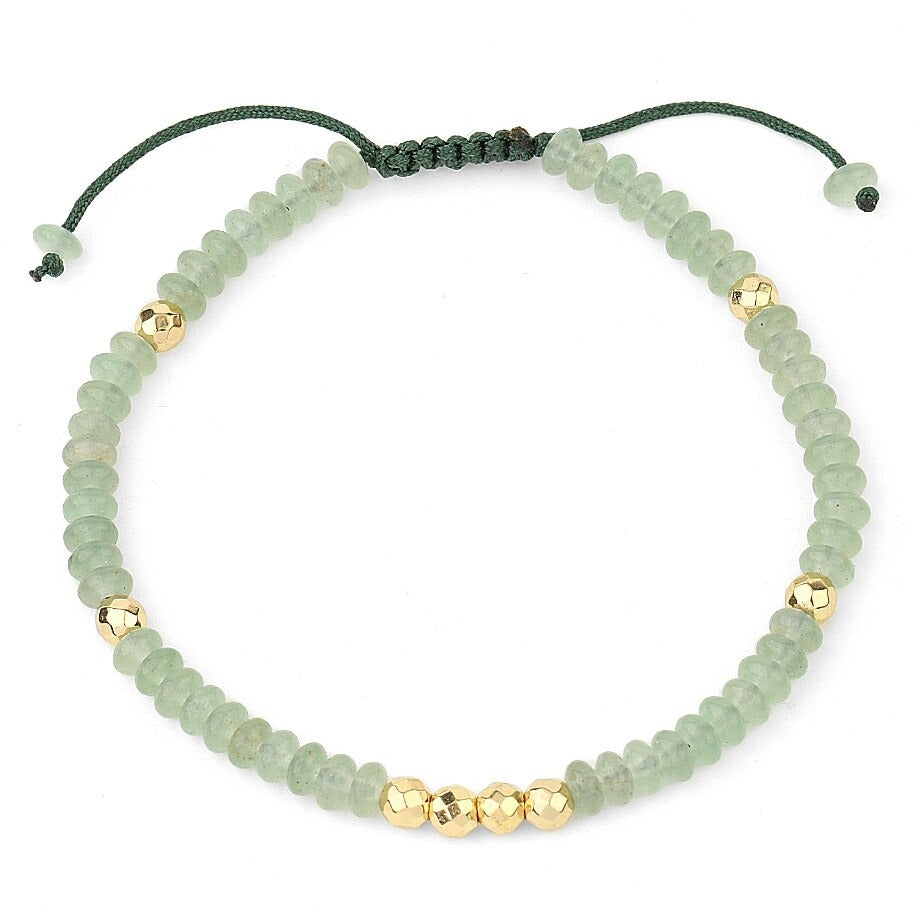 Introducing the bracelet with aventurine stone and cotton thread! This stunning piece is made from natural aventurine mineral stones and high-quality cotton thread. It's the perfect accessory to add a touch of glamour to any look.