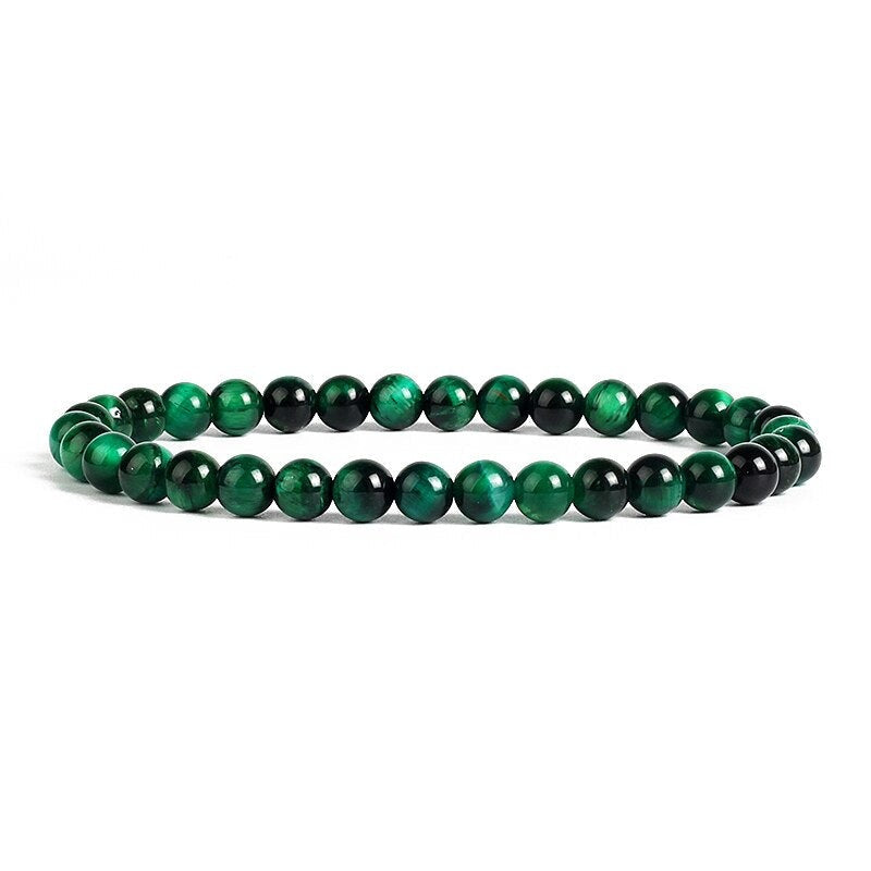 It offers you a better understanding of the world around you by opening your chakras. The green Tiger's Eye bracelet is especially connected to the heart chakra.
