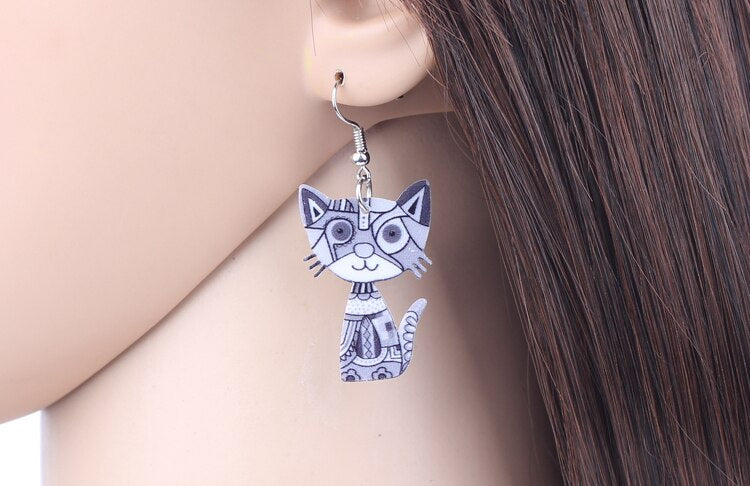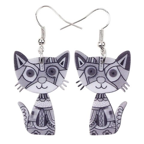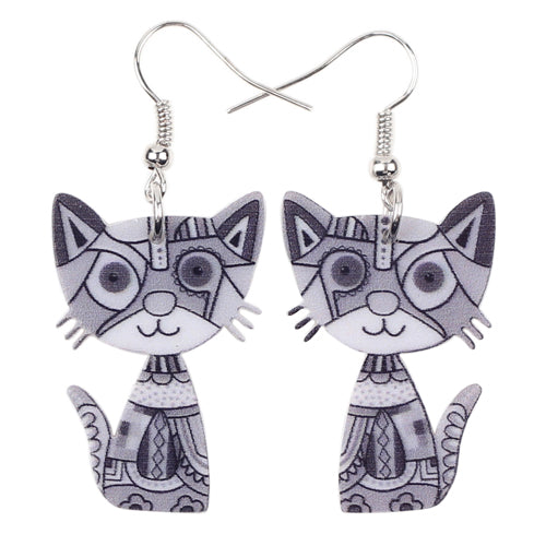 These stunning grey-toned earrings, featuring a beautiful mosaic pattern, are perfect for all cat lovers.