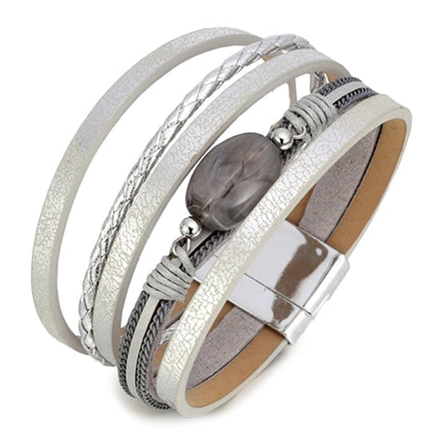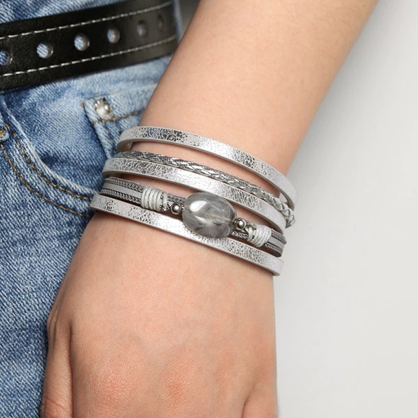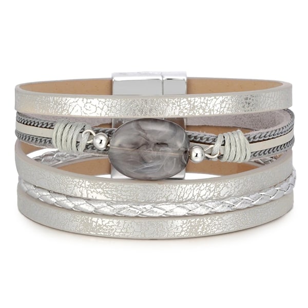 Add a subtle touch of fashion to your look with this women's leather bracelet with a grey pearl. Whether you wear it daily or on special occasions, this fashion accessory enhances your style with elegance thanks to the natural grey pearl placed in the centre of several circles. The women's leather bracelet with a grey pearl is easy to put on and take off thanks to the practical metallic clasp, and has everything to become your favourite bracelet in your jewellery collection.