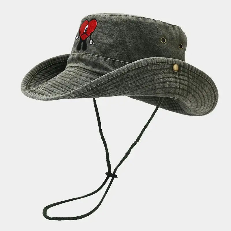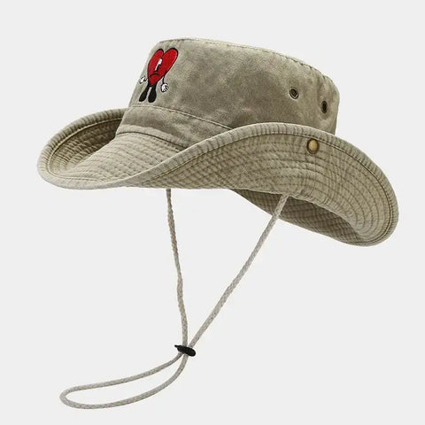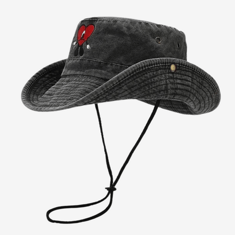 This heart bucket hat is the indispensable accessory for a casual and elegant look, filled with tenderness this summer. This unique hat, adorned with an embroidered heart, captures love for modern western style while offering effective protection against the sun.