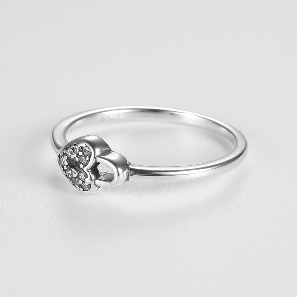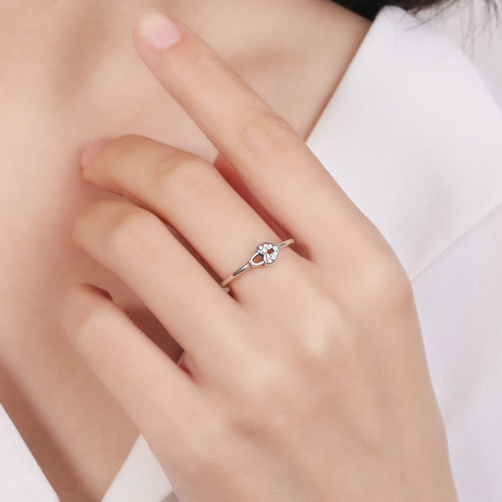 This heart ring with pendant clasp is designed to evoke unexpected love and secure romance. Made from fine silver, this charming ring expresses all the love present in your relationship. The ring's shimmering surface reflects ecstasy, and the unique combination creates a fascinating and romantic look.