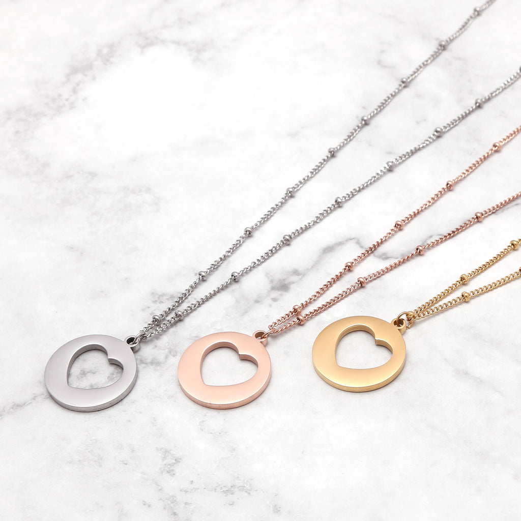 Would you like to pair a round pendant with a heart? Don't think about it any longer – we've already done it for you with this stainless steel heart-shaped pendant necklace.