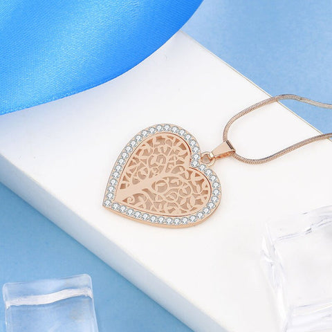 This charming rose gold heart necklace with a tree of life is the perfect gift to seal a romantic relationship, create an unforgettable memory of a special moment, or simply a delicate declaration of love.