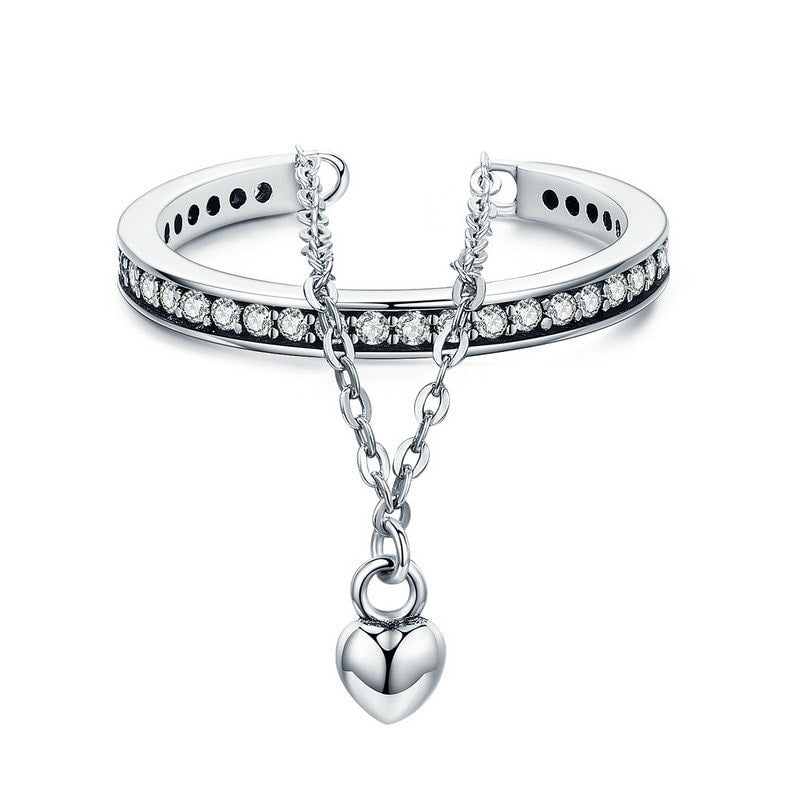 This heart ring with pendant is a high-quality, beautiful and striking piece of jewellery, perfect for making your loved one happy. The design features an elegant heart adorned with small pearls that form a chain around the finger. The finish is handmade and reflects the unparalleled luxury you deserve.