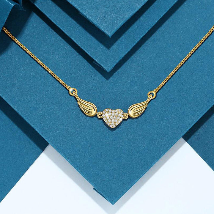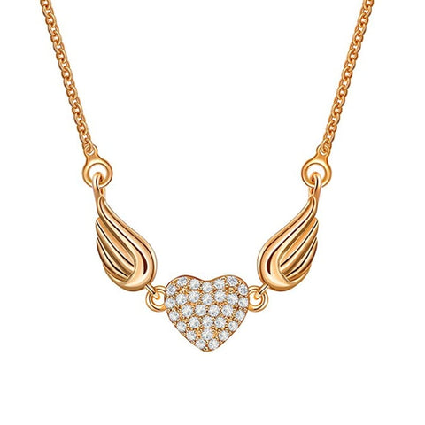 This beautiful heart-shaped necklace with angel wings is made from yellow gold. This lovely piece of jewellery creates a charming light effect on the neck thanks to the precious metal it is crafted from. The finish is perfect, with subtle details which include a gemstone and an incredible charm that complements the whole ensemble.