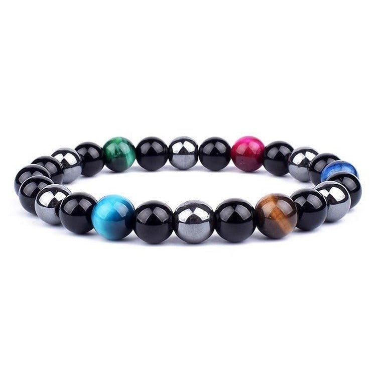 This hematite bead bracelet with an original style is an excellent gift for men, made with genuine hematite stones. The bracelet is stretchable and fits most wrist sizes. Hematite is a stone used to help balance energy, providing a sense of calm and focus. It is also believed to bring luck and protect against negativity.