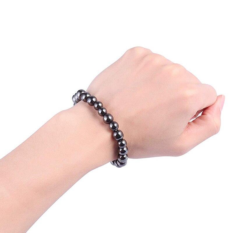 Use this natural hematite bracelet and feel the benefits of this precious stone. This hematite bracelet is made with genuine hematite stones and black elastic thread.