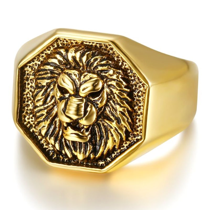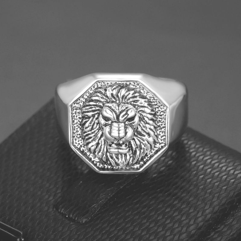 This hexagonal lion signet ring is truly special and unique. Most signet rings are round in shape, but this one stands out with its hexagonal design. This makes it exclusive, as very few signet rings are designed in this shape. Moreover, this ring with a lion's head never fades or rusts, as it is made of stainless steel.