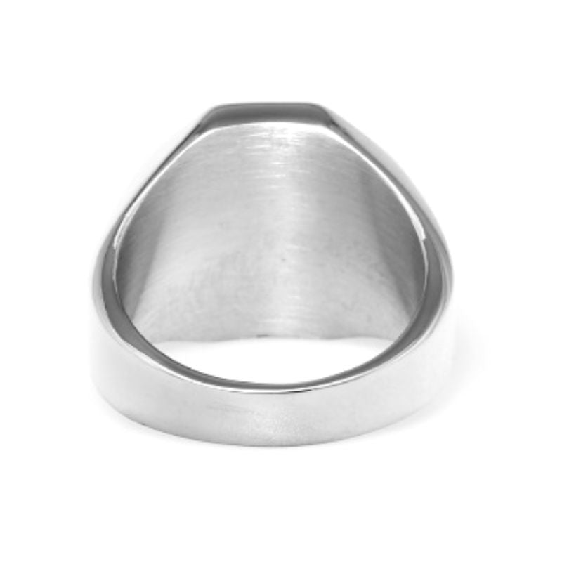 The lion is one of the most popular animal symbols of all time, representing not only royalty, but also the fallen hero. As the king of the wild animals, it radiates courage, strength, and power. This feline is often engraved on various everyday objects, like on this stainless steel signet ring.