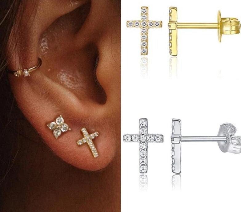 High-Quality Sterling Silver 925 Women's Cross Earrings
