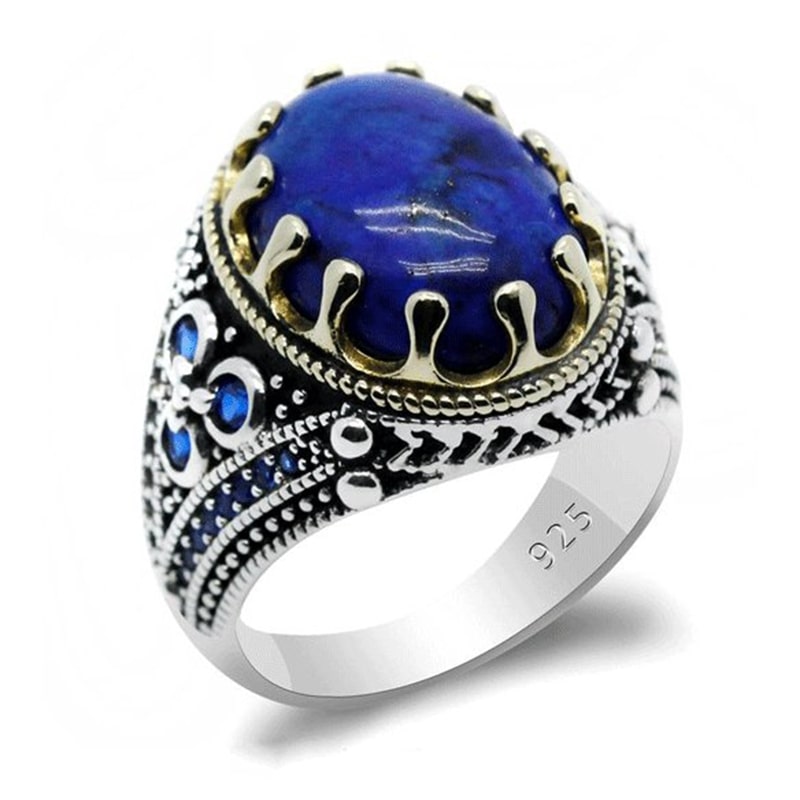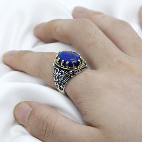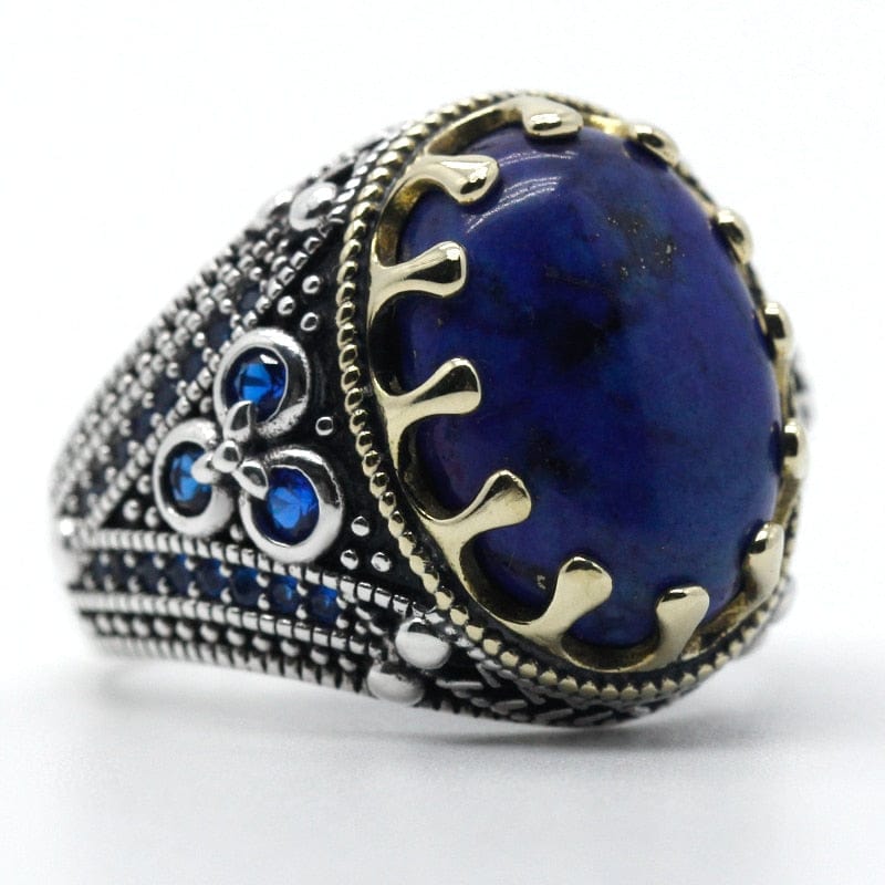 This stunning ring, made from high-quality lapis lazuli and silver, appeals to both men and women. A unique and exclusive piece of jewellery.