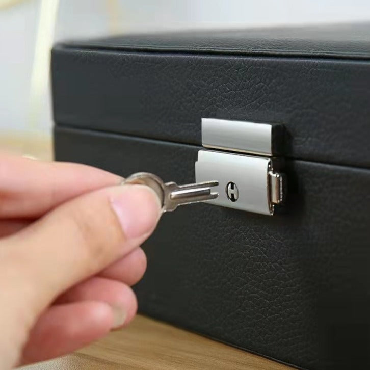 This premium High-Quality leather jewellery box is crafted from high-quality leather and offers the perfect storage solution for your treasured pieces. Measuring 17 x 23 x 9 cm, this spacious box features 8 hooks and thoughtfully designed compartments, allowing you to neatly organise necklaces, bracelets, rings, and earrings. The classic rectangular design adds a touch of timeless elegance to your storage space. Plus, the secure closure ensures your most valuable jewellery stays safe and protected.
